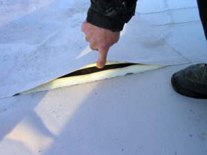 Dachöffnung Steffen Krüll 13. November 2016Schäden Untersuchung auf Feuchtigkeit bei einem Flachdachaufbau.